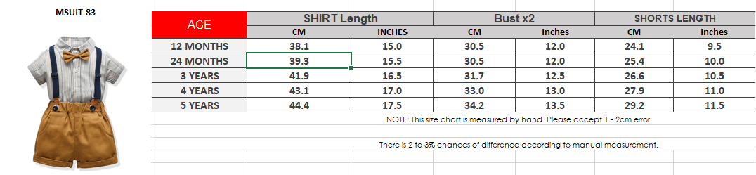 * Include: 1 Shirt with bow-tie, 1 shorts with suspender